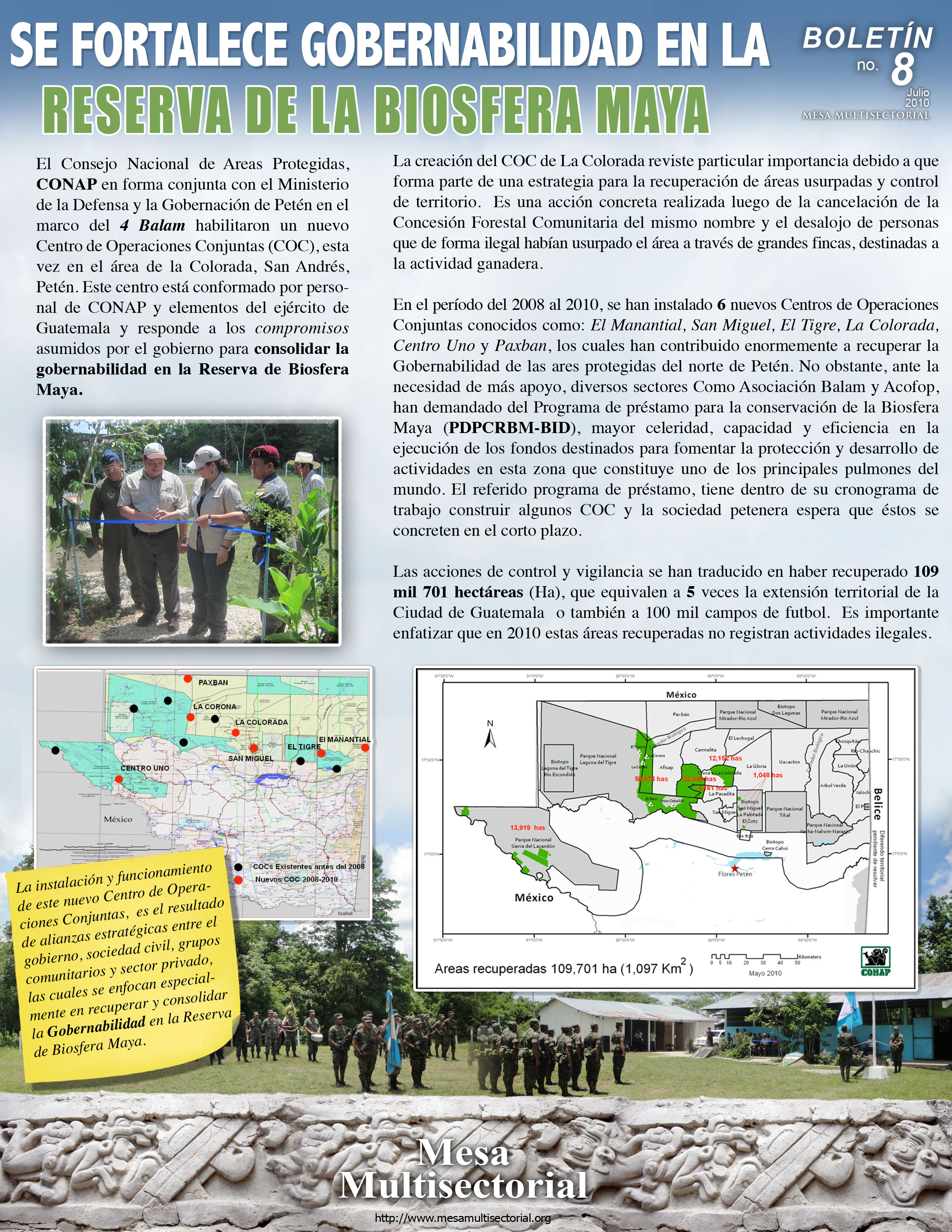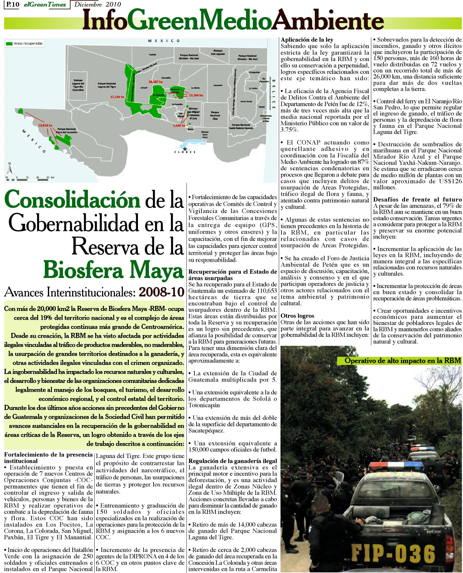 Boletines de la mesa multisectorial: Boletín1, Boletín2, Boletín3, Boletín4, Boletín5, Boletín6, Boletín7, Boletín8, Boletín9 Campo pagado: Asesinato lider comunitario David Salguero/Concesión Forestal Comunitaria Cruce a La Colorada Gobernabilidad: GOBERNABILIDAD_RBM_2010 Green Times Pag 22 Gobernabilidad RBM Resumen Proyecto Gobernabilidad DFID